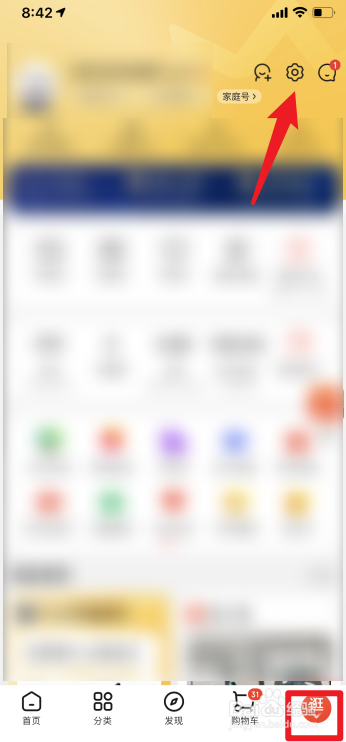 进入“我的”,点击右上角的设置图标。