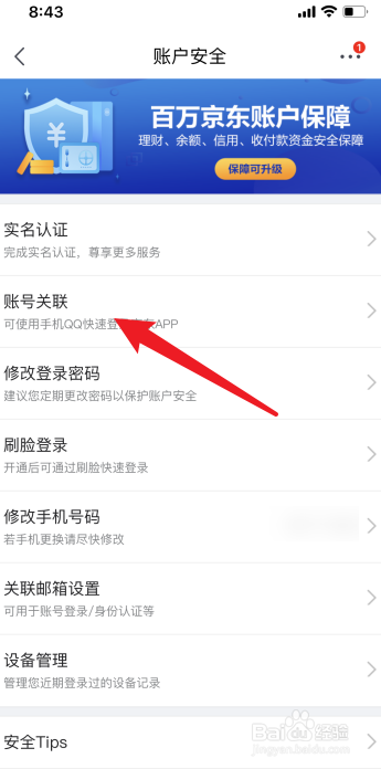 进入账户安全页面,点击“账号关联”。
