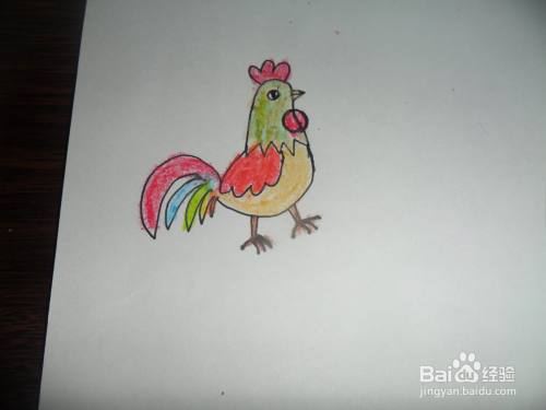 给它涂上漂亮的颜色。一只大公鸡就出现啦。