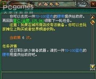 4四、寻找物品 这个任务依然和巧燕任务相似,按任务要求上交一个物品:比较找到一个70到100级的蓝色腰带。