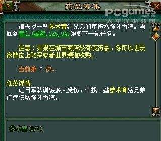 2二、寻找药品 此任务的主要是上交药品,基本是帮派的巧燕任务所需要的药品,比如两仪膏,决明膏、黄山三美、状元及第粥之类的。
