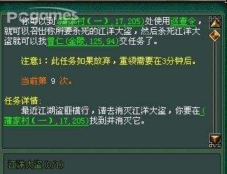 6六、单枪匹马 这个类似于帮派的巡查任务,根据任务要求,找到相应的坐标,然后,使用“巡查令”就会出现一个“江洋大盗”,杀死就算完成任务,任务很简单。