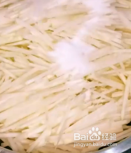 苤蓝切丝,放盐拌匀,腌制一个小时