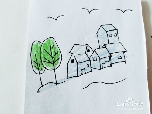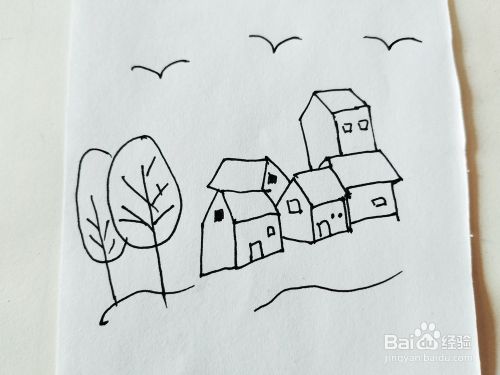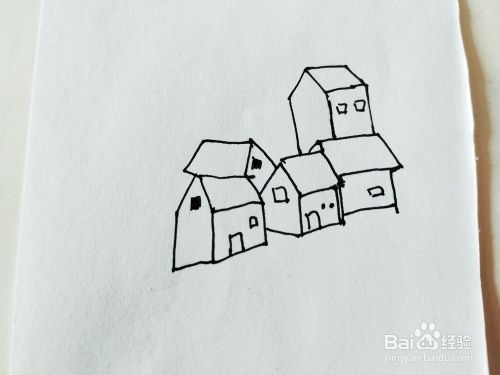 然后我们继续来画小房子挨边的另一间小房子,农村的小房子就是如此,一间挨着一间,如下图