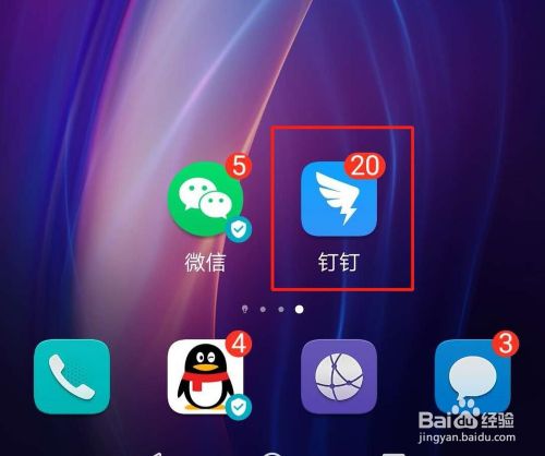 点击手机桌面“钉钉”快捷方式图标,运行钉钉并登录。