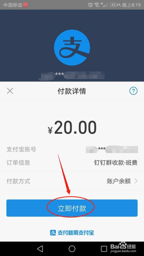 在“付款详情”页面,点击“立即付款”按钮。