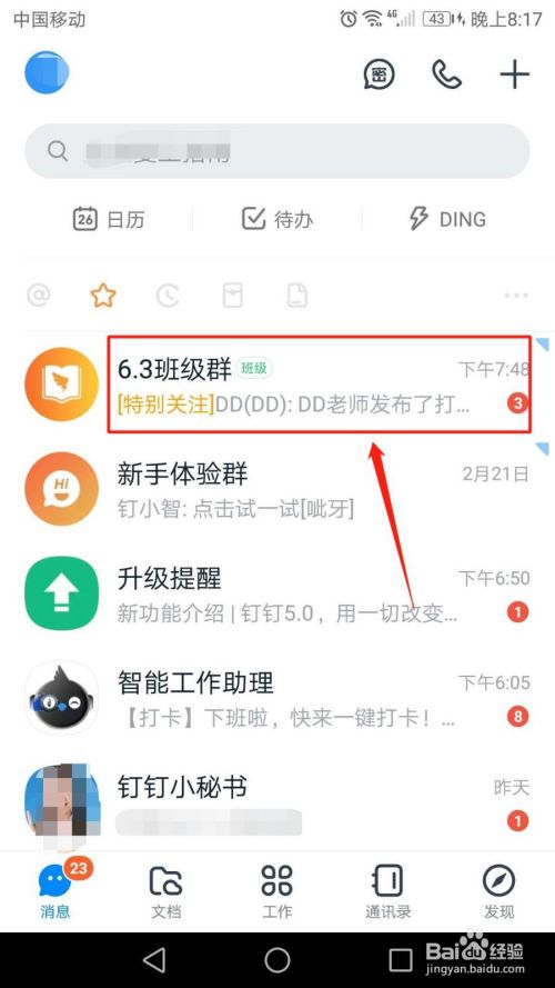 进入钉钉后,点击要支付收款的班级群。