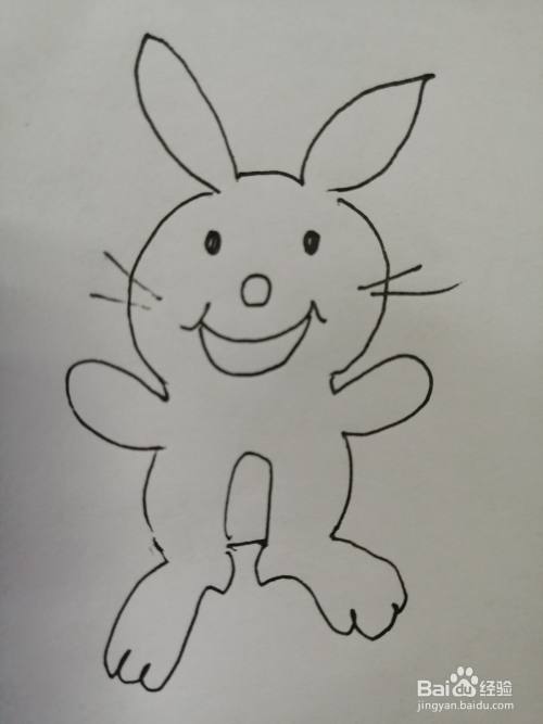第七步,最后把可爱的小兔子的两条腿画出来。可爱的小兔子就画好了。