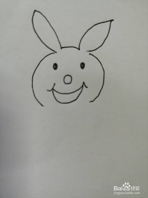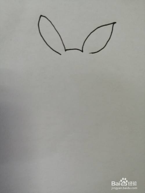 第一步,我们先把可爱的小兔子的耳朵和头部轮廓画出来,注意小兔子耳朵的画法。