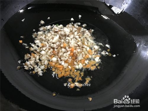 重新起锅, 多放一点点油,把胡萝卜和香菇放进锅内,用大火翻炒几下。