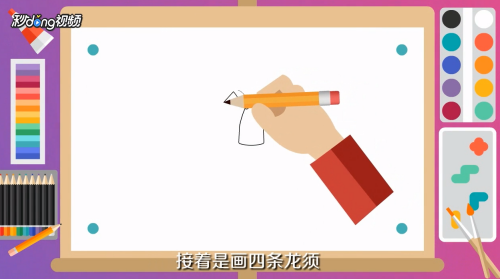 然后画出龙须的下半部分,总共有六节,再画上尾巴的部分。