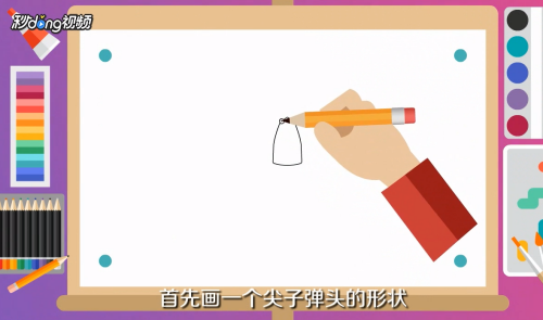 首先画一个尖子弹头的形状,然后画上两个圆圆的眼睛。
