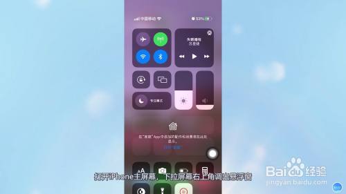 打开iPhone主屏幕,下拉屏幕右上角调出悬浮窗,在悬浮窗里面点击打开家庭。