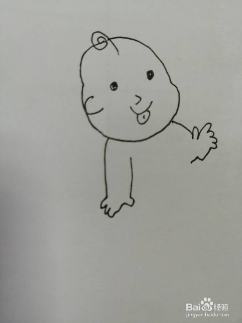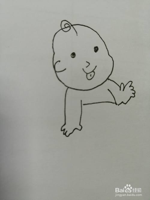 第四步,接着在可爱的小婴儿的头部下面画出两只小胖手,画法比较简单。