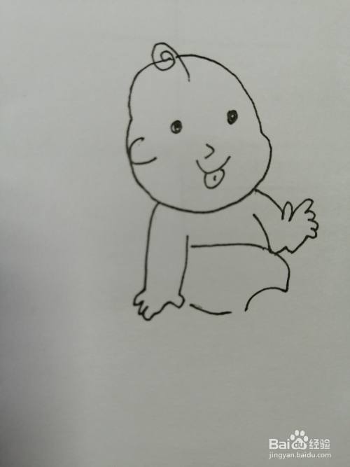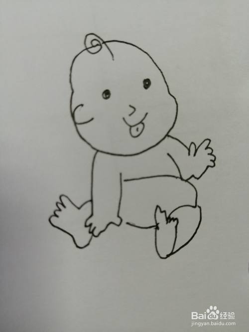第七步,最后把可爱的小婴儿的两只小胖脚画出来。可爱的小婴儿就画好了。