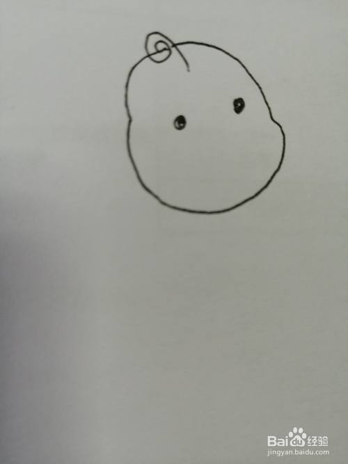 第二步,接着在可爱的小婴儿的头部里面画出两只黑色的眼睛。