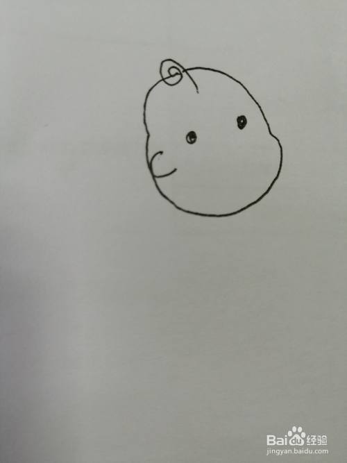 第三步,接着在眼睛下面画出鼻子和小嘴巴,注意小婴儿耳朵细节的画法。
