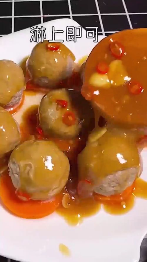 5倒入生抽,蚝油,水淀粉勾芡,淋在肉丸上即可。