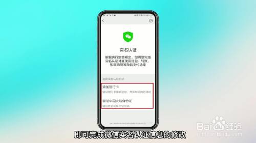 返回到微信支付管理界面,点击进入实名认证界面,添加新的银行卡或者新的身份证信息,即可完成微信实名认证信息的修改。