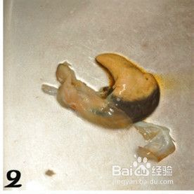 2.下来就是收拾鲍鱼了,其实很简单的。用勺子的把子把鲍鱼肉剜出来,要小心一点,下面有鲍鱼的内脏,尽量不要把鲍鱼的内脏给扎破,然后用干净的废牙刷,把鲍鱼上面的脏东西给刷掉,差不多后把鲍鱼清洗干净,就是图4的样子了。