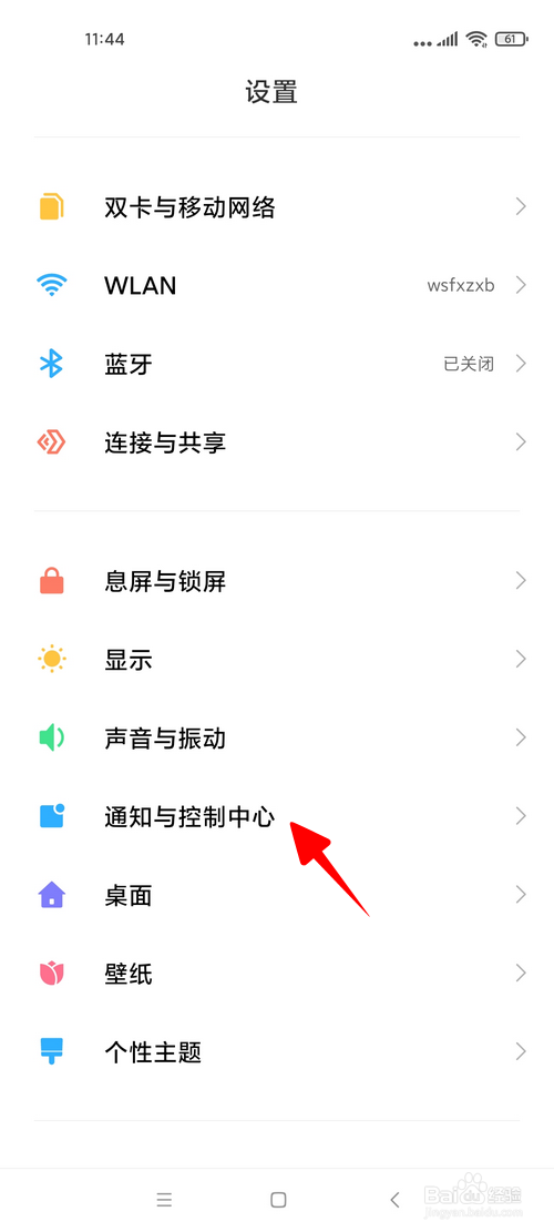 点击“通知与控制中心”。