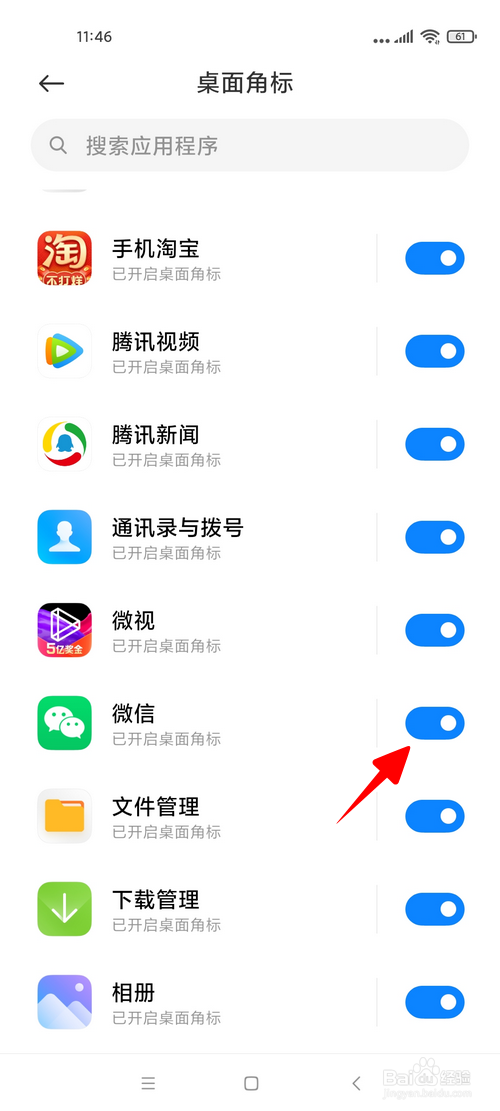 在应用列表中查找“微信”。