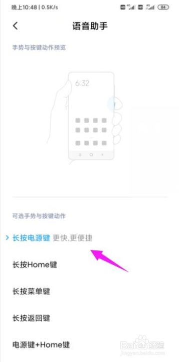 第四步,设置为【长按电源键】唤醒小爱同学。