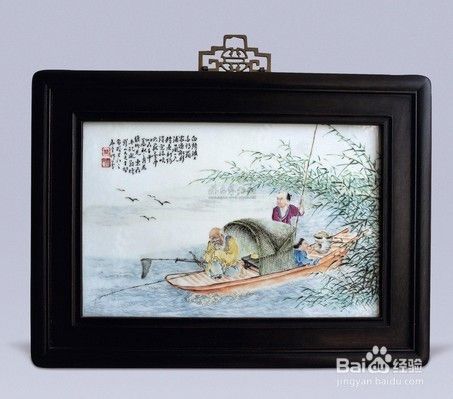 描述:此瓷板描绘的是渔家生活,江中白浪上有一位白发老人,船行到哪里,家也就移到哪里,水面有微风拂过,白发老人钓得一条尺把长的鲈鱼,儿孙们更忙着在荻花丛中吹火待煮。他的画风古朴,用笔细腻,人物脸上髭须都根根可见。构思严谨、气势洒脱。特别是他能巧妙地把中国画中的“意兴”与陶瓷绘画有机结合起来,此瓷板就巧妙运用了作品画风纯正、端庄。