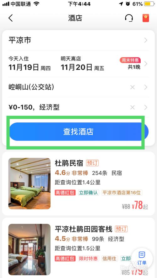 最后,界面就出现附近且较经济的酒店可以选择啦