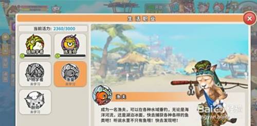 按照任务的提示进行流程,就可以得到一个鱼竿了。还可以学习钓鱼的详细方法。然后就可以开启钓鱼这个生活职业了,玩家可以钓到各种鱼类来做成食材哦。