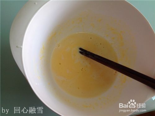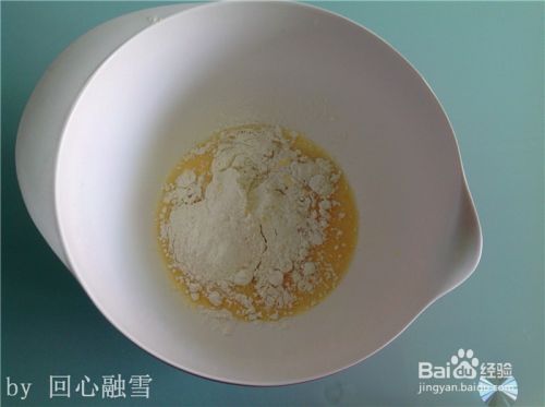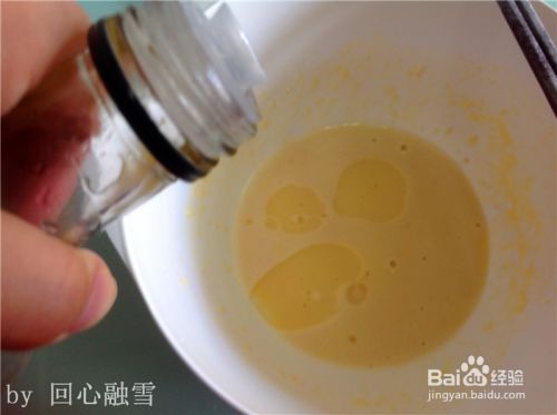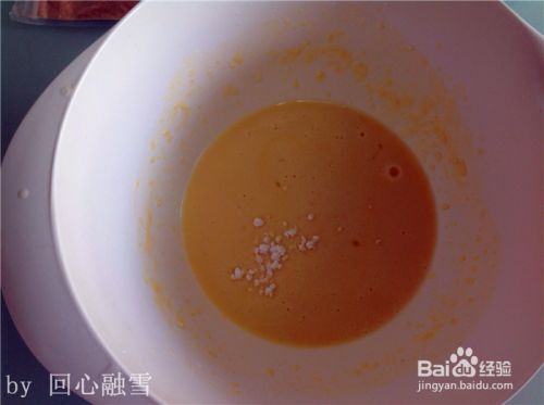 放入牛奶和少量白糖、盐,苏打粉后搅拌均匀(这里我还放了帮助消化的鸡内金粉末)