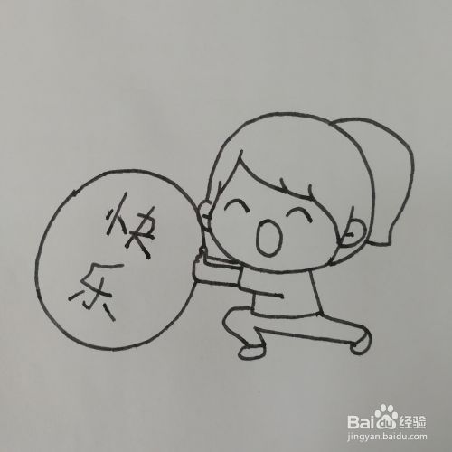 接下来绘画一个简单的椭圆形,写上“快乐”文字