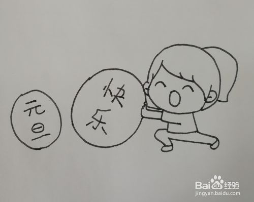 下面再来分享一个小女孩送新年福气的卡通简笔画哦