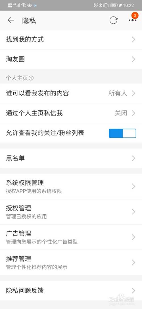 点击头像下的第六按钮“隐私”,即可进入。