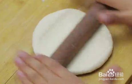 拿住矿泉水瓶瓶口,在面皮上按一下,然后再转一下;