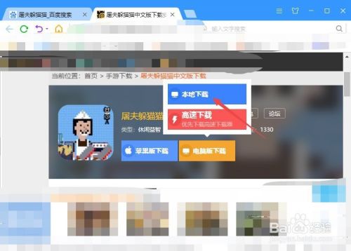 3、输入屠夫躲猫猫,按回车键,之后点击搜索出来的下载网站。