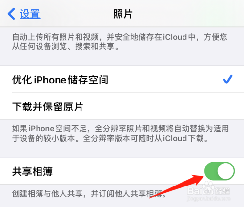第三步,进入照片页面之后,选择共享相册后面的按钮。
