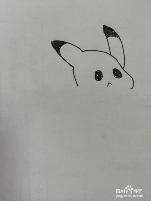 第三步,在可爱的皮卡丘的脸部里面画出两只黑黑的大眼睛。