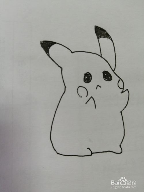 第六步,然后在可爱的皮卡丘的首部下面画出胖胖的身体。