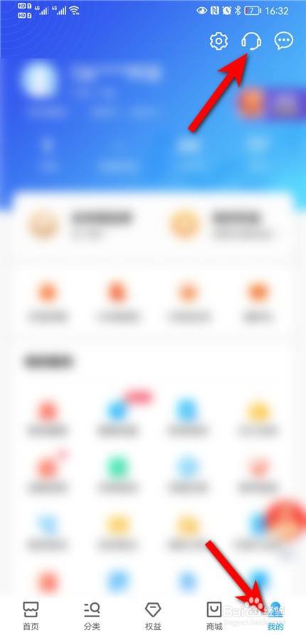 进入app我的页面,点击客服图标。
