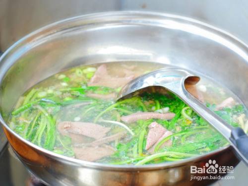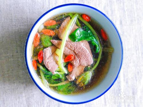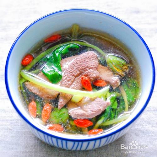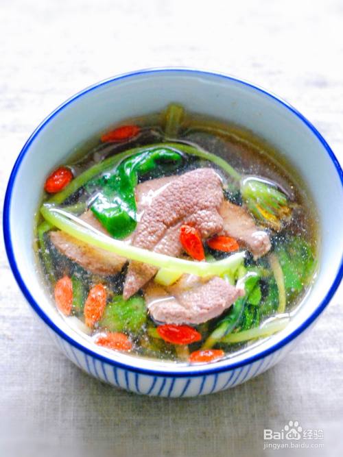 撒入泡软的枸杞,再次大火煮沸即可关火,养肝明目又美味的蒲公英猪肝汤就煮好了,虽然略微有点苦味,但也清香爽口。