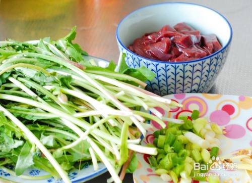 首先我们要准备好制作这道【蒲公英猪肝汤】需要用到的所有食材:新鲜蒲公英去除根部和老叶,把嫩叶和花茎放入水中清洗干净,然后捞出沥干水分后切段备用。枸杞用清水泡软后捞出、葱切成葱花、姜切成姜丝备用。猪肝去筋膜后用刀切成薄片,放入水中浸泡上半个小时,然后用清水冲洗掉血水,一定要多冲洗几遍。然后捞出沥干水分放入碗中,调入生抽、料酒和淀粉拌匀腌制10分钟。