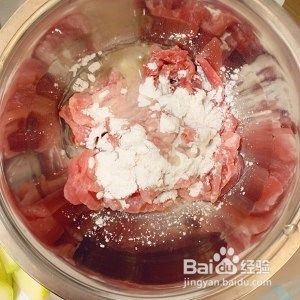 如果来得及,就生抽+淀粉+瘦肉+食用油搅匀,腌制15分钟