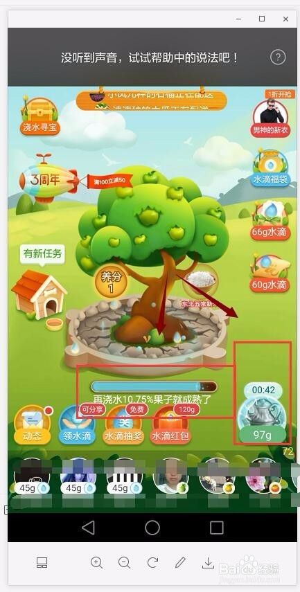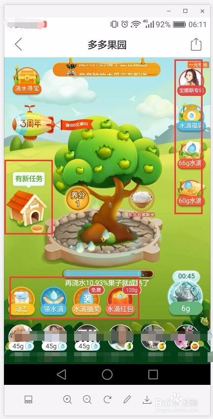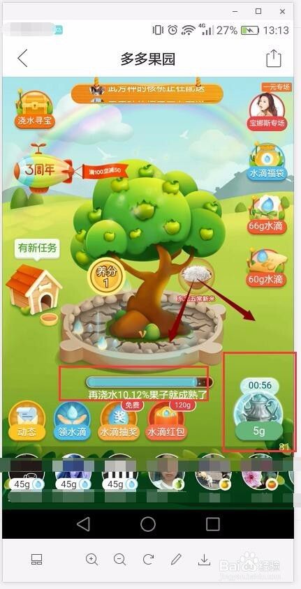 现在多多果园浇水的数量比较多,在浇水的时候可以观察一下减少的百分比数量,也好有一个对比度。