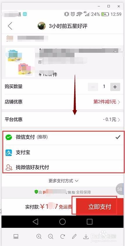 如下是支付界面,在此窗口中可以选择微信、支付宝或是邀请他人帮自己支付,按照提示进行下一步操作。