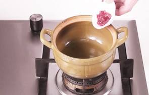 倒入淘好的大米和牛肉,搅拌均匀后。加入适量的清水