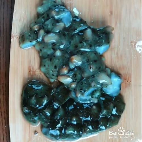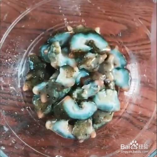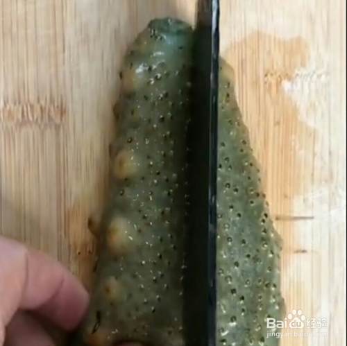 用刀划一下海参,摘掉内脏,清洗干净。
