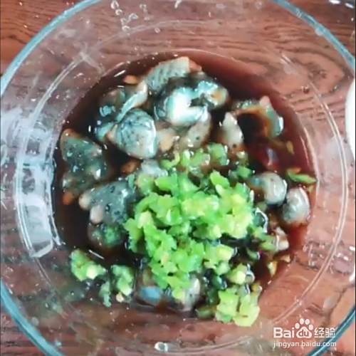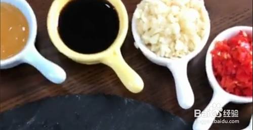 准备配料:料酒、酱油、鲍鱼汁、醋、大蒜、青红辣椒。全部处理好备用。
