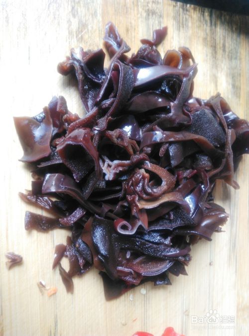 准备好食材:大蒜适量拍碎稍切碎,木耳切成丝,辣椒切成长2厘米左右的条块、油渣要求不能炸的枯黄,白色为好。
