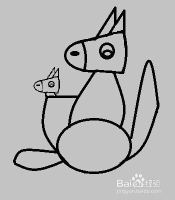 画大袋鼠的嘴巴、鼻子,如图所示。